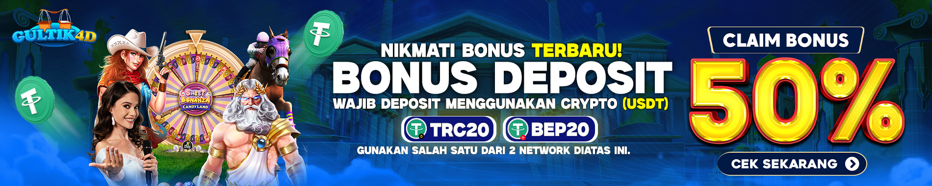 1. WAJIB DEPOSIT MENGGUNAKAN CRYPTO (USDT)2. BONUS DEPOSIT 50% (MAX BONUS 50.000)