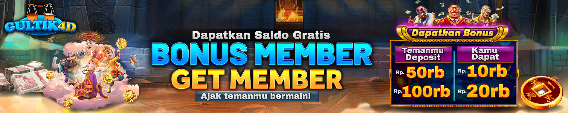 • 1. Ajak teman bermain minimal deposit 50rb, dapat 10rb.